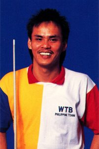 Rodolfo Luat Card Number 107 Rodolfo started to play pool at the age of 12 and instantly became fascinated with the game. Practicing whenever he could, "Boy Samson" had ambitions of becoming a top notch player. At the age 16, he turned Pro and saw his dreams come true. He went on to take second place in the '88 Ocean World Cup and the ' 91 Taipei World Cup. Improving his game, he then took first in both the Asian Championships in '91 and the Philippine 9-Ball Open in 92. When not playing pool, Rodolfo enjoys watching movies. |