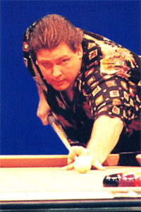 Roger Griffis Card Number 12 An Air Force veteran, Roger has been playing pool since he was 14. He joined the Pro Tour in '90 and won his first tournament by beating a field of nine World Champions. The very next week, he beat Efren Reyes to win the Hollywood Open. "The Rocket" as he likes to be called, gained national recognition when he won the '92 Professional Billiards Tour Championship in Memphis, becoming the first player to win a tournament where a shot clock was in use. In his spare time, Roger plays golf, chess, follows the Dallas Cowboys and Phoenix Suns and markets his own brand of Jalapeño peanut brittle. |